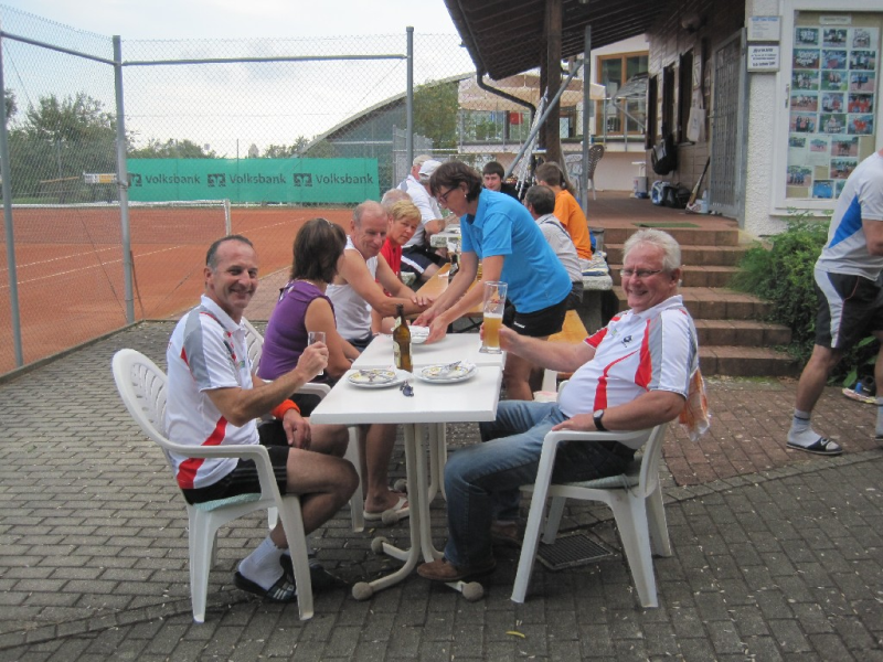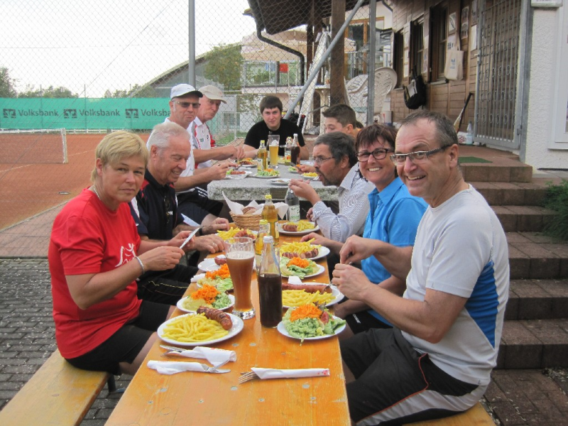Die Herren 50 / 2 Mannschaft beim gemütlichen Beisammensein nach dem Training