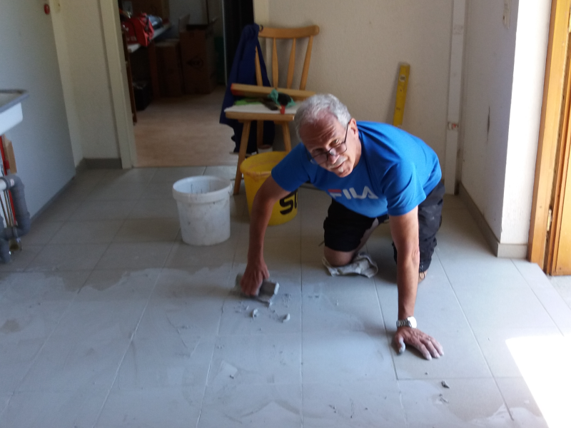 Jugendpower war gefragt beim Entfernen des Teppichbodens im Schulungsraum. Ein Dank an Christoph Mueller , Marius Geldon , Markus Zeller und Sascha Speck