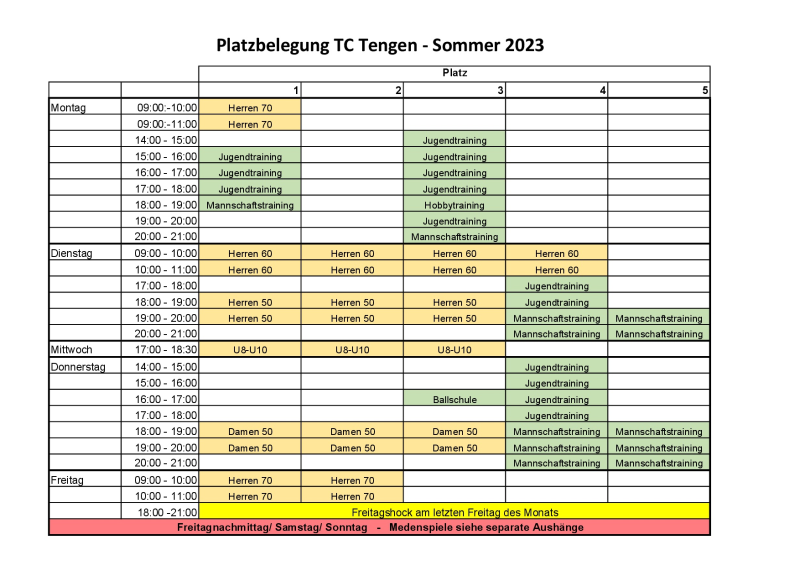 Freitags von 18-20 Uhr fand das Jahr über ein Spielen für Jedermann unter der Leitung von Walter Zimmermann statt. Er als Breitensportwart konnte durch diese Möglichkeit für den TC Tengen 2 Aktive und 2 Jugendliche für den Tennisclub Tengen als Neumitglieder gewinnen.