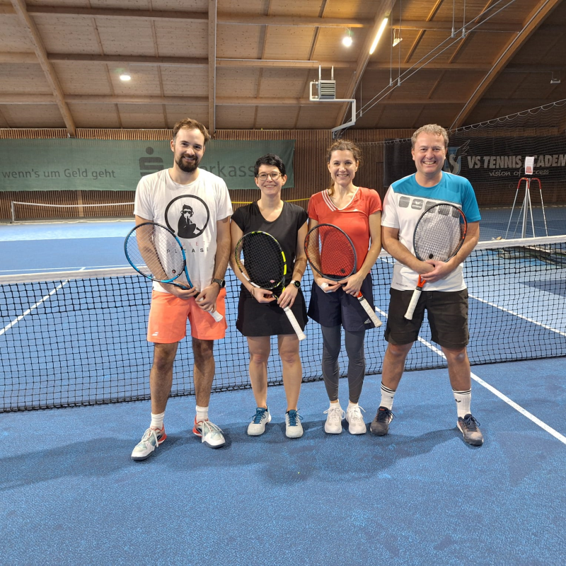 Breitensportler am Freitagabend ab 18.00 Uhr sehr viel Spaß untereinander beim Tennisspielen.