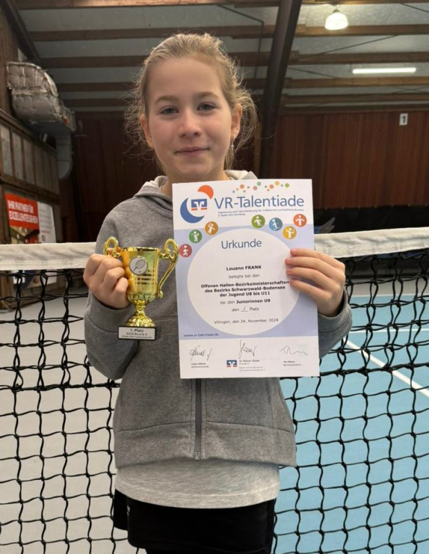 Louann Frank holt sich souverän den Bezirksmeistertitel bei den Juniorinnen U9. Sie siegte im Finale klar gegen Lisa Luca vom TC Moos.