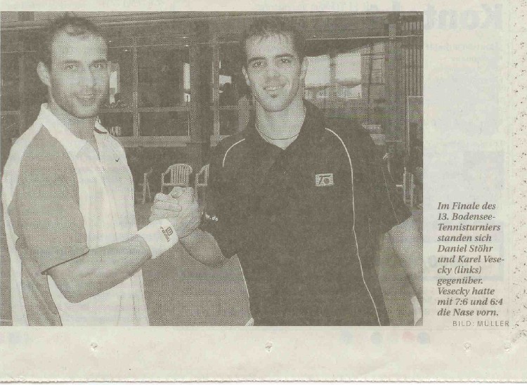 Im Finale des 29. Bodensee – Tennisturniers war Spannung pur angesagt. Der an Pos. 1 gesetzte 28 jährige  Philipp Mayer vom TC Schönberg-Freiburg ( DTB – Nr. 136 ) kam erst gut in das Spiel und mußte dann trotzdem den  1. Satz mit 7 : 5 abgeben. Im 2 Satz wurde sein Gegner der an 4 Gesetzte Noah Thurner immer stärker und machte fast keine Fehler mehr und gewann den 2 Satz mit 6 : 3 . Somit konnte sich Noah Thurner über den Turniersieg und den Siegerscheck von 500 € freuen. Die Finalisten lobten die gute Organisation des Turniers