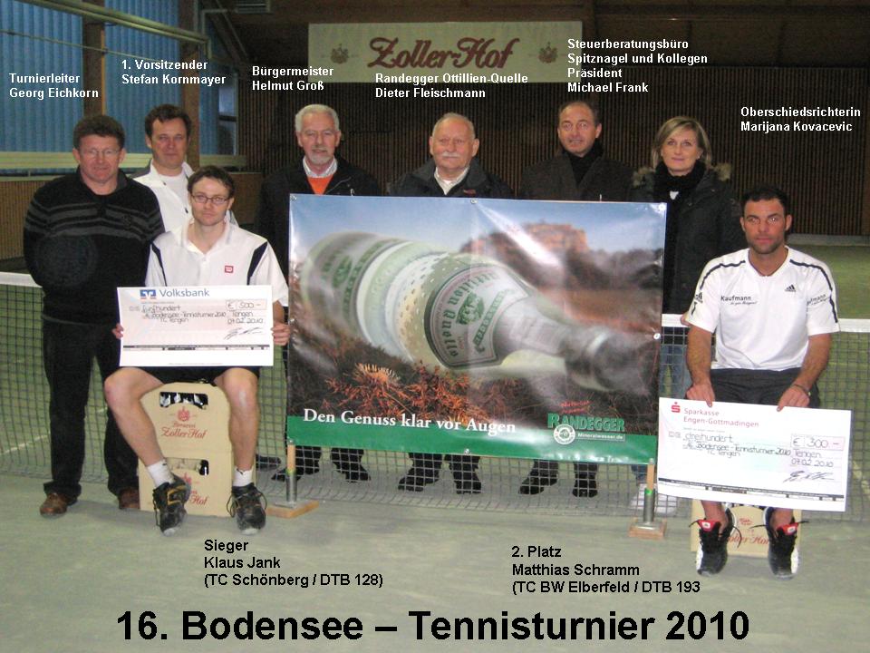 Mit der Zoller-Hof-Brauerei, den Edeka Münchow Märkten und der Randegger Ottilienquelle hat der TC Tengen Sponsoren gefunden, ohne diese so ein Tennisturnier der Spitzenklasse nicht durch zuführen wäre, so Turnierorganisator Georg Eichkorn.