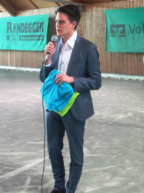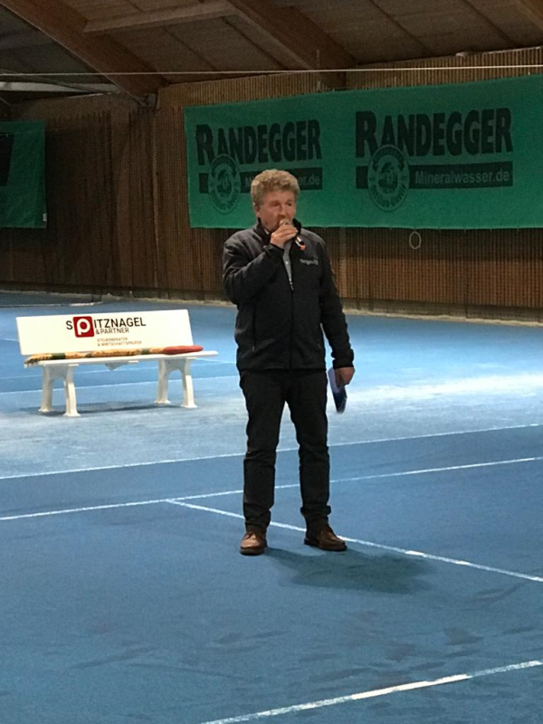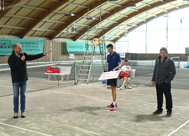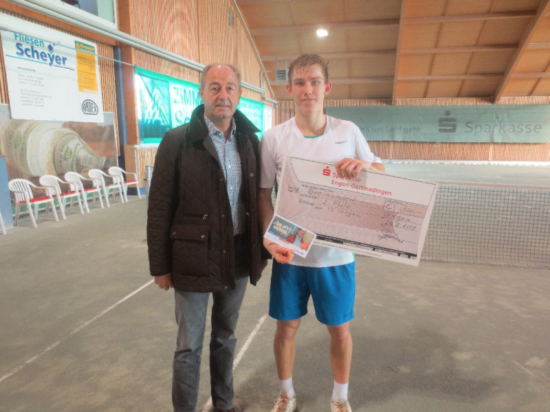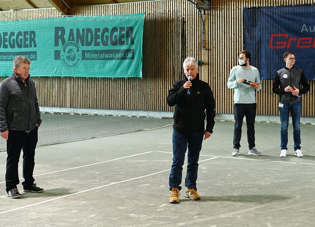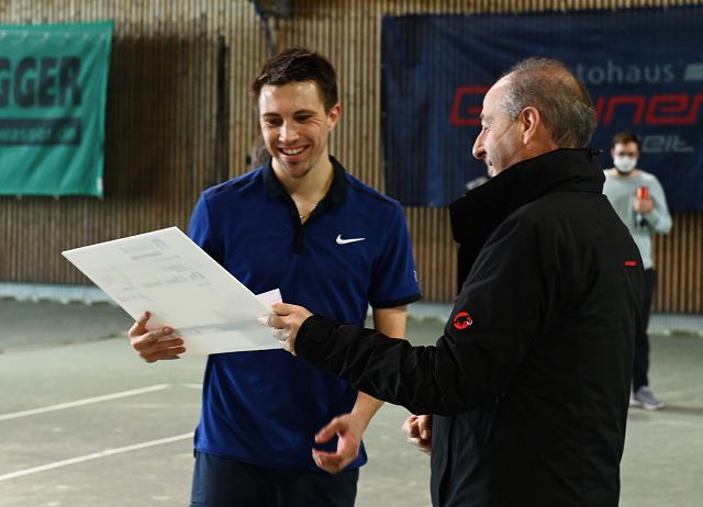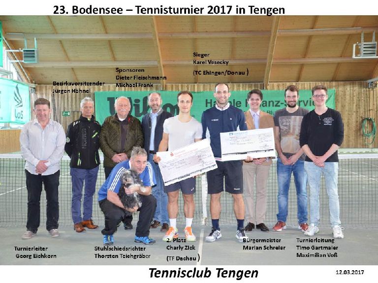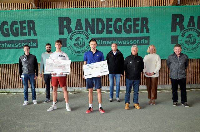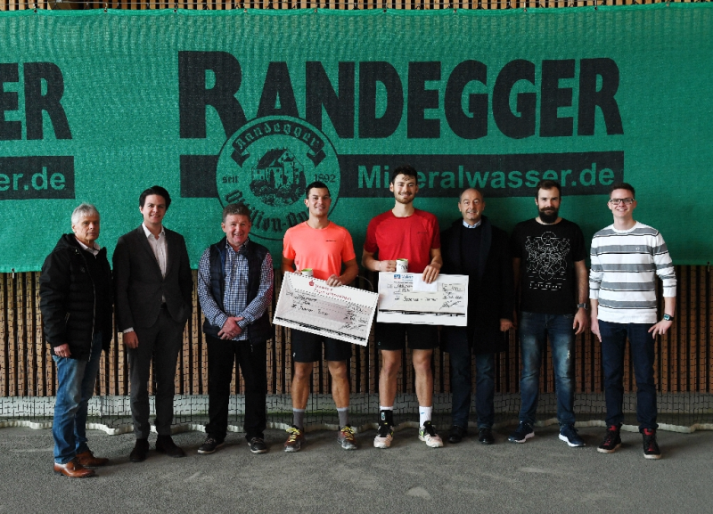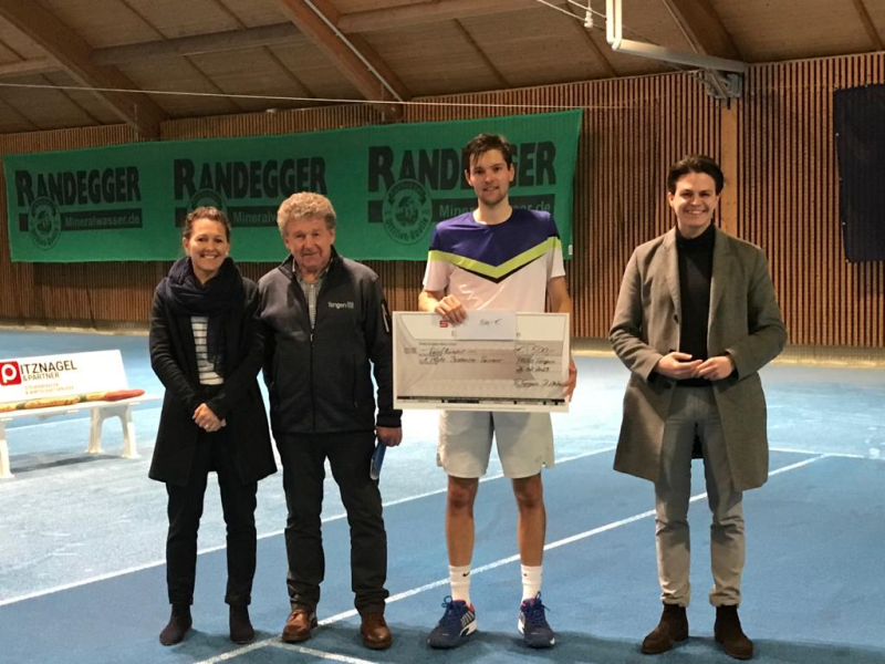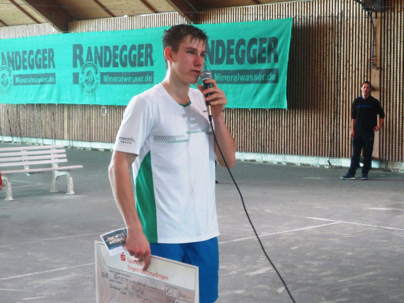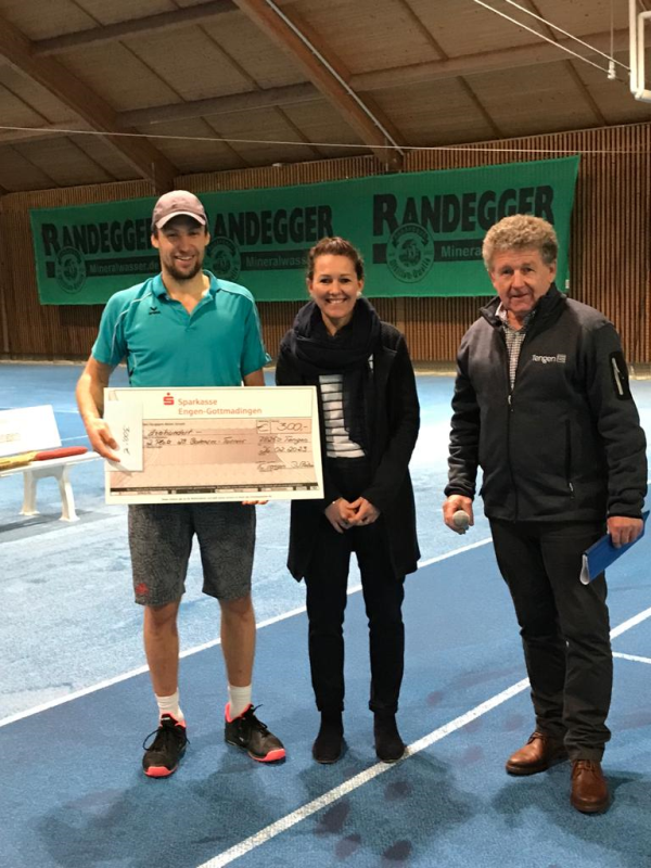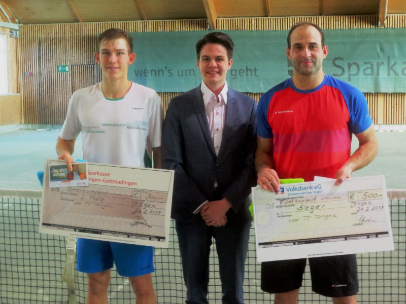 Bei der Siegerehrung bedankte sich Georg Eichkorn als Turnierorganisator bei den Sponsoren des Turniers Clemens Fleischmann (Randegger Ottilienquelle), Michael Frank (Steuerberatungsbüro Spitznagel & Kollegen) und bei der Zoller Hof Brauerei. Timo Gartmaier an der Turnierleitung und Maximilian Voß als Oberschiedrichter wurden vom Turnierorganisator für ihre gute und souveräne Arbeit gelobt. Die Platzbeauftragten Max Kornmayer, Philipp Gleichauf und Thomas Meister hatten wieder einmal für gut bespielbare Sandplätze in der Tennishalle gesorgt. Für das leibliche Wohl aller Teilnehmer und Zuschauer sorgten die Damen und Herren Mannschaften des TC Tengen.