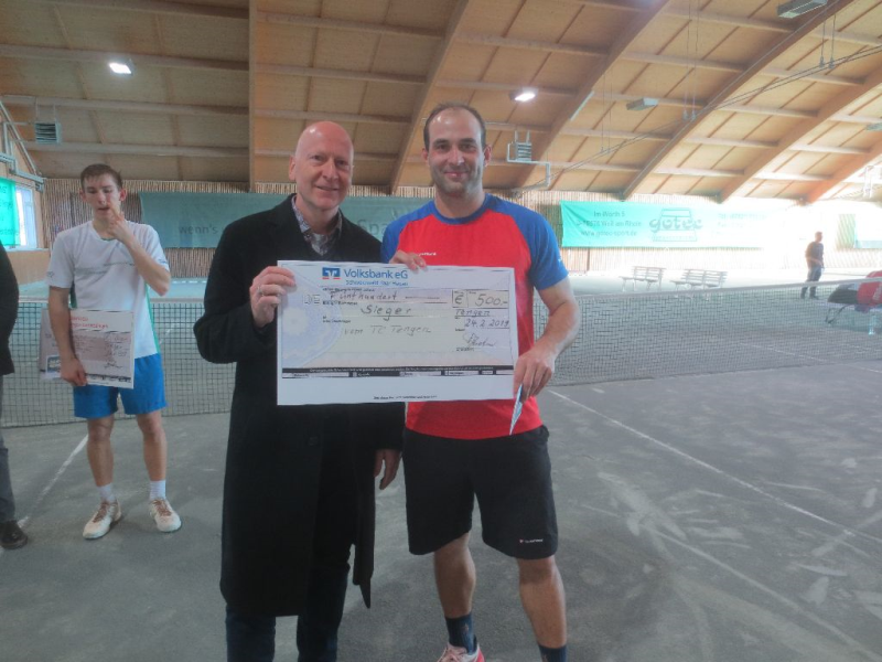in der neuen Sandplatz Tennishalle statt. Dem Sieger winkt ein Preisgeld von 700,-- Euro. Insgesamt werden 1.900,- € an Preisgeldern ausgeschüttet.