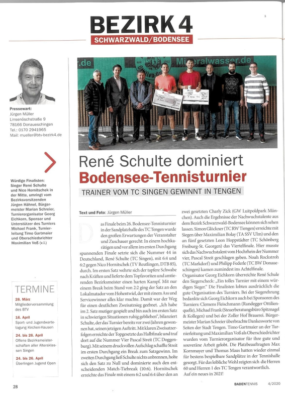 Bericht  Wochenblatt 26. Bodensee Tennis Turnier 2020 (PDF Dokument - bitte hier doppelklicken)