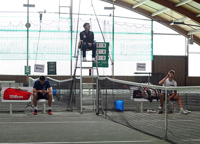 Das zweite Halbfinalspiel wurde sehr ausgeglichen geführt. Den ersten Satz konnte Valentino Pest (DTB 172; an 6 gesetzt) gegen Mario Eckardt (DTB 142; an 3 gesetzt) mit 6:2 gewinnen. Im 3ten Satz drehte Mario Eckardt das Spiel und konnte die beiden Folgesätze mit 6:4 / 7:5 für sich erarbeiten und das Spiel gewinnen