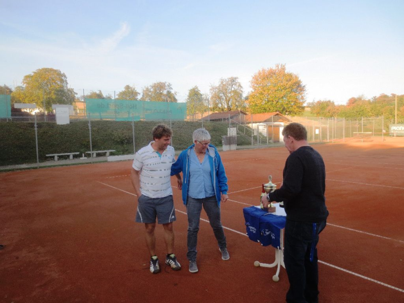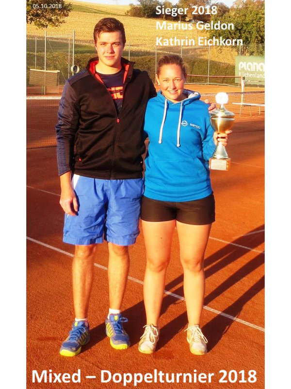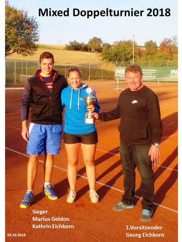 Zum Abschluss der Aussenplatzsaison 2018 spielten 11 Mixed – Doppelteams um den Doppelturniertitel 2018. In drei Gruppen wurden in Gruppenspielen die Halbfinalisten ermittelt. Mit viel Einsatz und Spielwitz wurde um jeden Spielpunkt hart gekämpft. In der Gruppe 1 erreichten Angelika Eichkorn / Tobias Müller als Gruppenerste das Halbfinale. Kathrin Eichkorn / Marius Geldon spielten sich in der Gruppe 2 unangefochten ins Halbfinale. In Gruppe 3 qualifizierten sich David Steiner / Timo Gartmaier für die Endrunde. Das Team Tanja Zeller / Wolfgang Strölin freuten sich als beste Gruppenzweite aller Gruppen über die Halbfinalteilnahme. Im 1. Halbfinale setzten sich Tanja Zeller / Wolfgang Strölin gegen Angelika Eichkorn / Tobias Müller durch und das 2. Halbfinale entschieden Kathrin Eichkorn / Marius Geldon gegen David Steiner / Timo Gartmaier für sich.